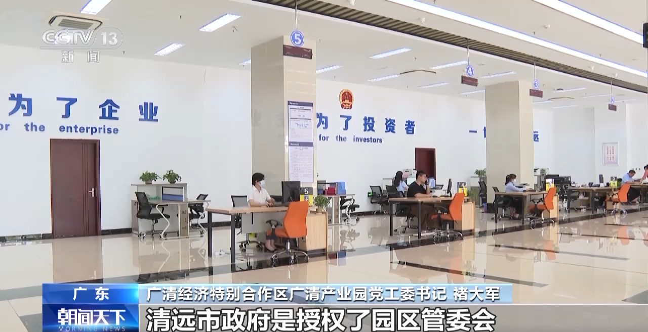 广清经济特别合作区广清产业园党工委书记 褚大军:就像我们后面写的“一切为了投资者,一切为了企业”,清远市政府是授权了园区管委会74项的行政审批权,足不出园区,可以办理完毕。