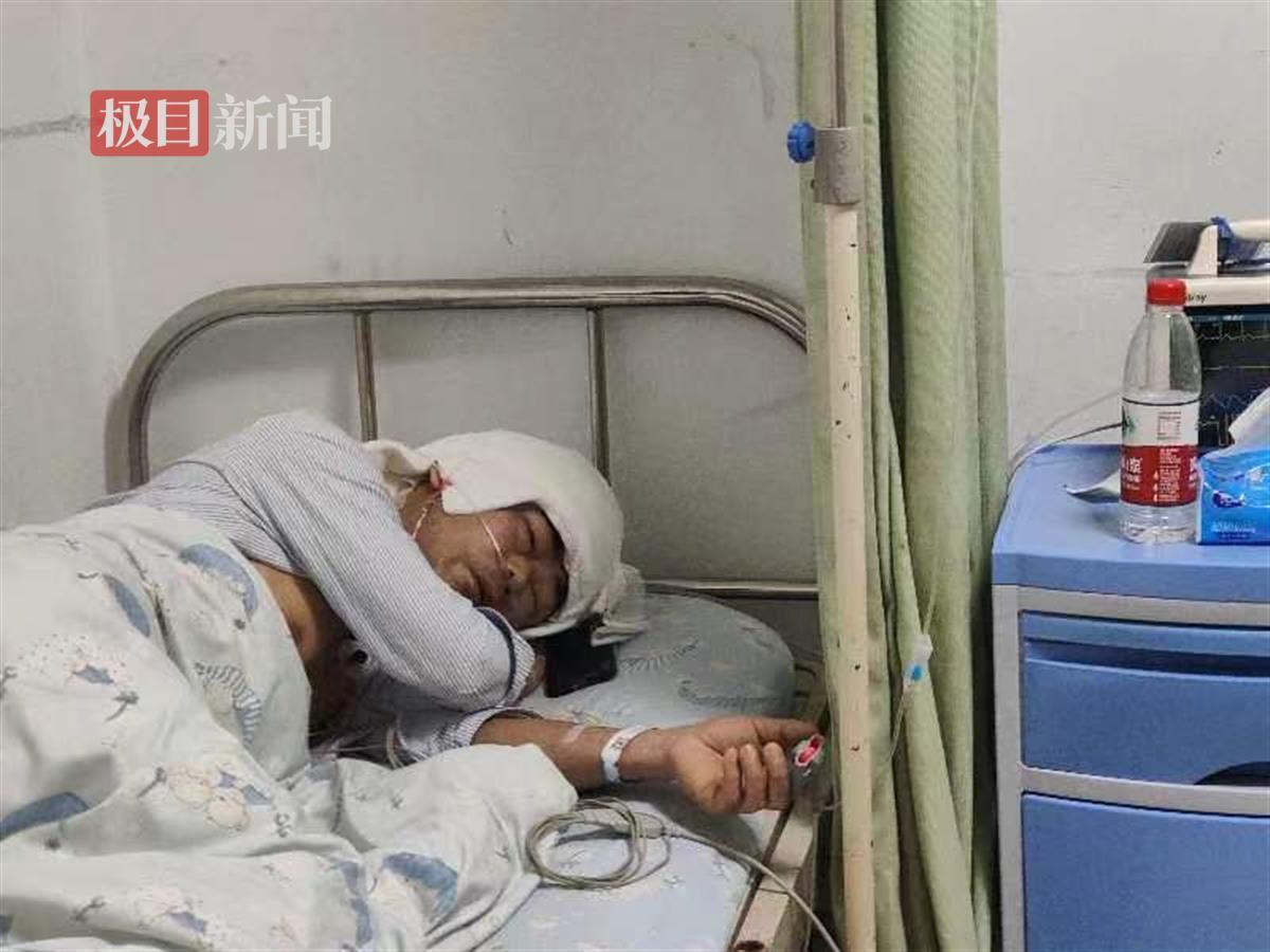 因为孩子的头皮面积太小,为了救治女儿,父亲胡小军16日割掉自己的头皮,给大女儿进行植皮,当天记者见到他的时候,他刚给女儿做完植皮手术躺在床上,因为疼痛,他的双眼肿得老高,头被纱布包裹着。