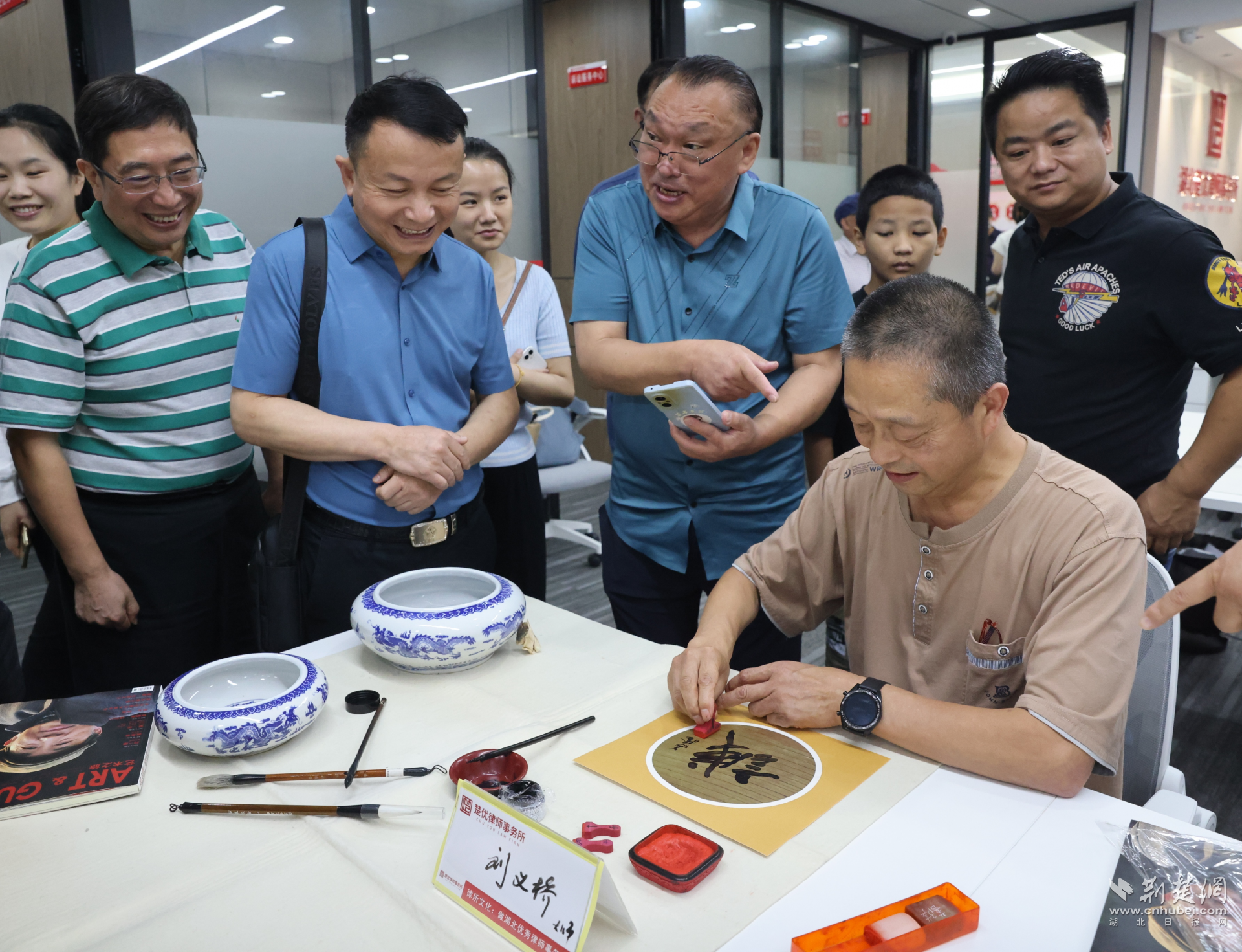 荆楚网(湖北日报网)讯(通讯员丁华荣)6月17日,湖北省中国画研究院院长、国家一级画师孔奇,叶画大师刘义桥、徐安雅,水彩画家和教育家刘布尔,画家毛锦华,诗人崔怀强,摄影师陈勇等艺术家以及法治日报湖北记者站、楚天法治杂志、湖北法治杂志等媒体记者齐聚湖北楚优律师事务所,参加了楚优律所举办的法治宣传文化活动。