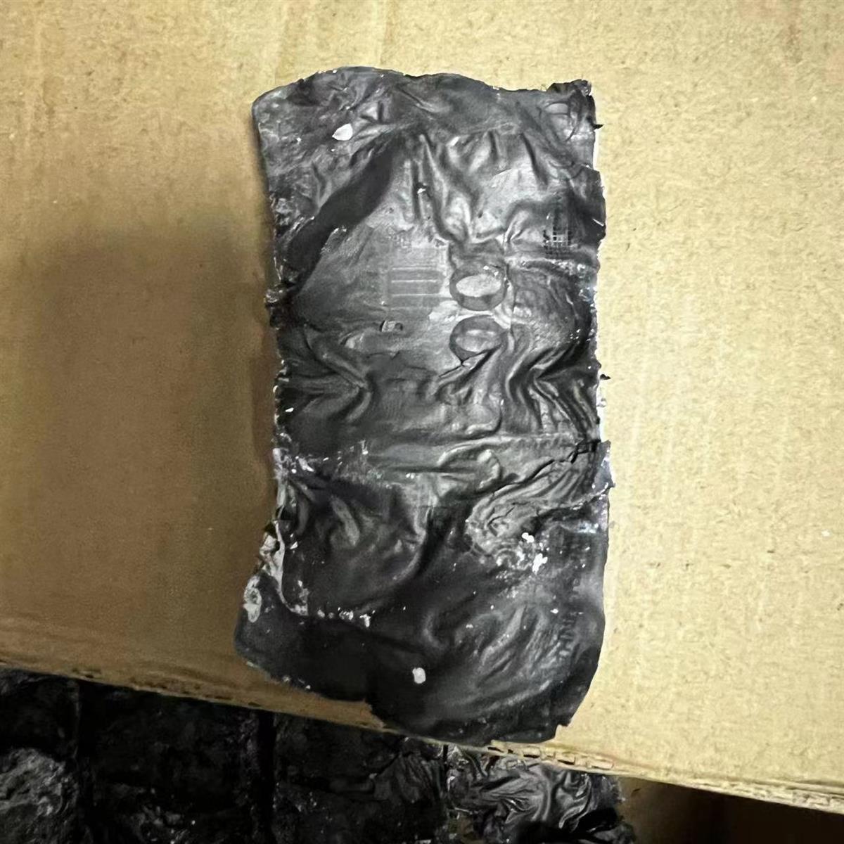 许先生父亲被烧炭化的现金。(受访者供图)