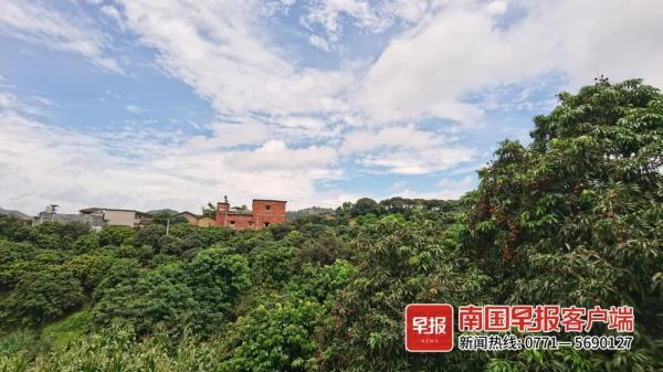 6月18日上午,雨过天晴,记者驱车在钦北区长滩出口下高速,道路两边的山头上、屋檐边,眼到之处都是荔枝树,树上挂满了红彤彤的荔枝,载满荔枝的摩托车、小货车、物流车在村道上来回穿梭,“哒哒”的马达声在山头回荡,果农们笑逐颜开,满心欢喜,客商们将一车车的荔枝拉往外地销售。