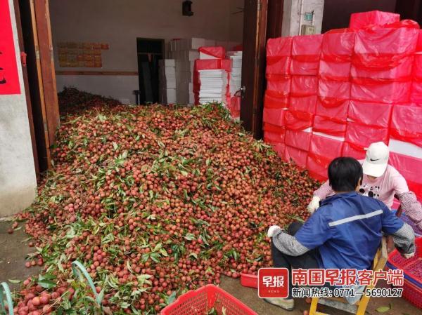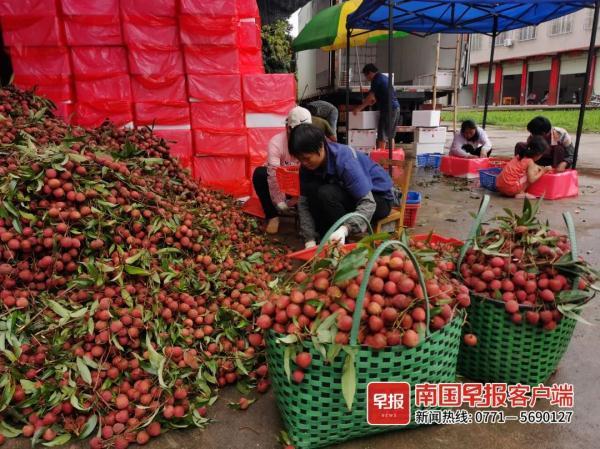 农女士是新棠人,四年前,看好本地荔枝种植结构变化,她做起荔枝收购生意。18日上午10时多,短短两个多小时,她在那黎村就收购了几千公斤荔枝,村民们正忙碌着挑拣、打冰、装箱、上车。当日下午,这批荔枝将随着冷链物流车运到四川成都销售,“等收完黑叶荔,还可以收购桂味、南局红等其他品种,价钱会更好”。