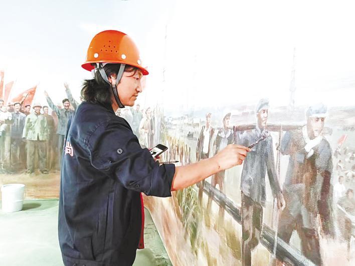 6月16日,位于江汉油田的五七油田会战指挥部旧址展览馆里,工人们正在做最后的装修收尾工作,再过10天时间,展览馆将以全新的面貌示人。