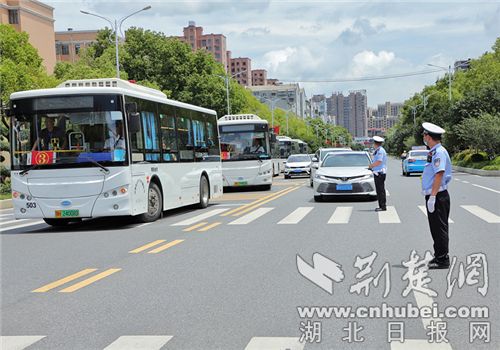 荆楚网(湖北日报网)讯(通讯员 黄翔)伴随警灯闪烁,两台警用摩托车护送6台满载考生的大巴车驶出沙洋县长林中学校门,车队在沿途交警指挥下,安全快速抵达考点。