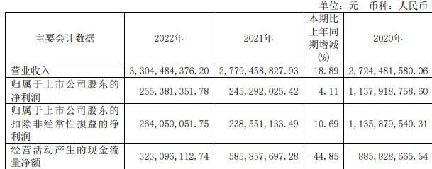 据神农集团2022年年报,报告期内,公司实现营业收入33.04亿元,同比增长18.89%;归属于上市公司股东的净利润2.55亿元,同比增长4.11%;归属于上市公司股东的扣除非经常性损益的净利润2.64亿元,同比增长10.69%;经营活动产生的现金流量净额3.23亿元,同比减少44.85%。
