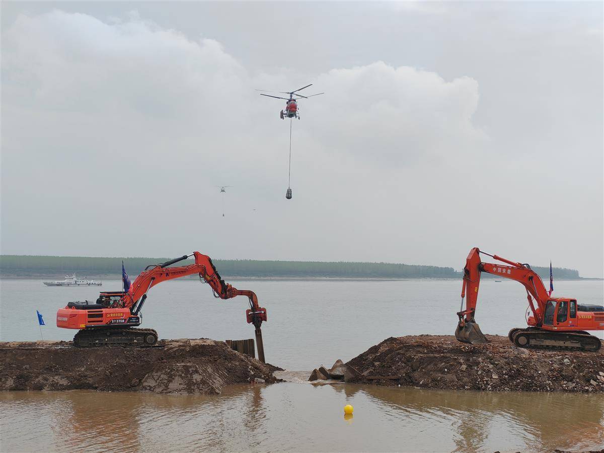 决口封堵行动主要演练陆上和空中专业力量运用新战法、新材料处置决口险情。