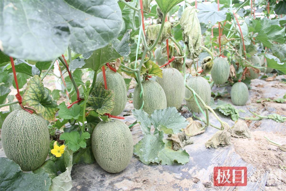 种植哈密瓜的大棚里结满瓜果
