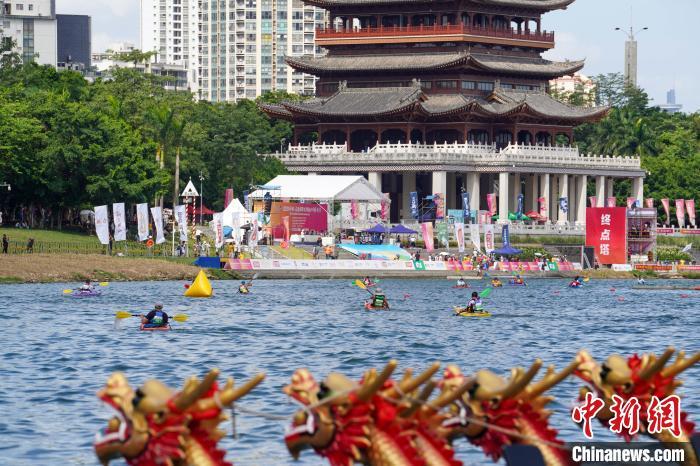 6月21日,2023年中国—东盟国际皮划艇公开赛在广西南宁举办,海内外选手竞速。 中新社记者 王以照 摄