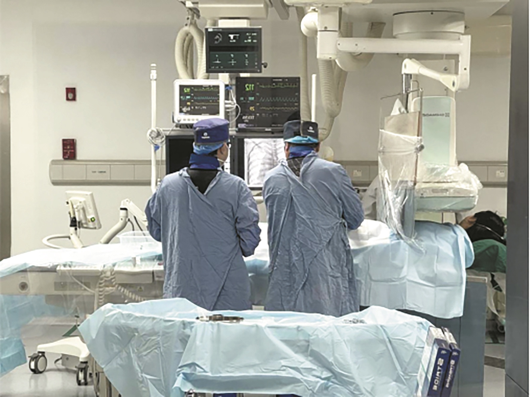 医生正在进行血管介入治疗 图片由武汉市肺科医院提供