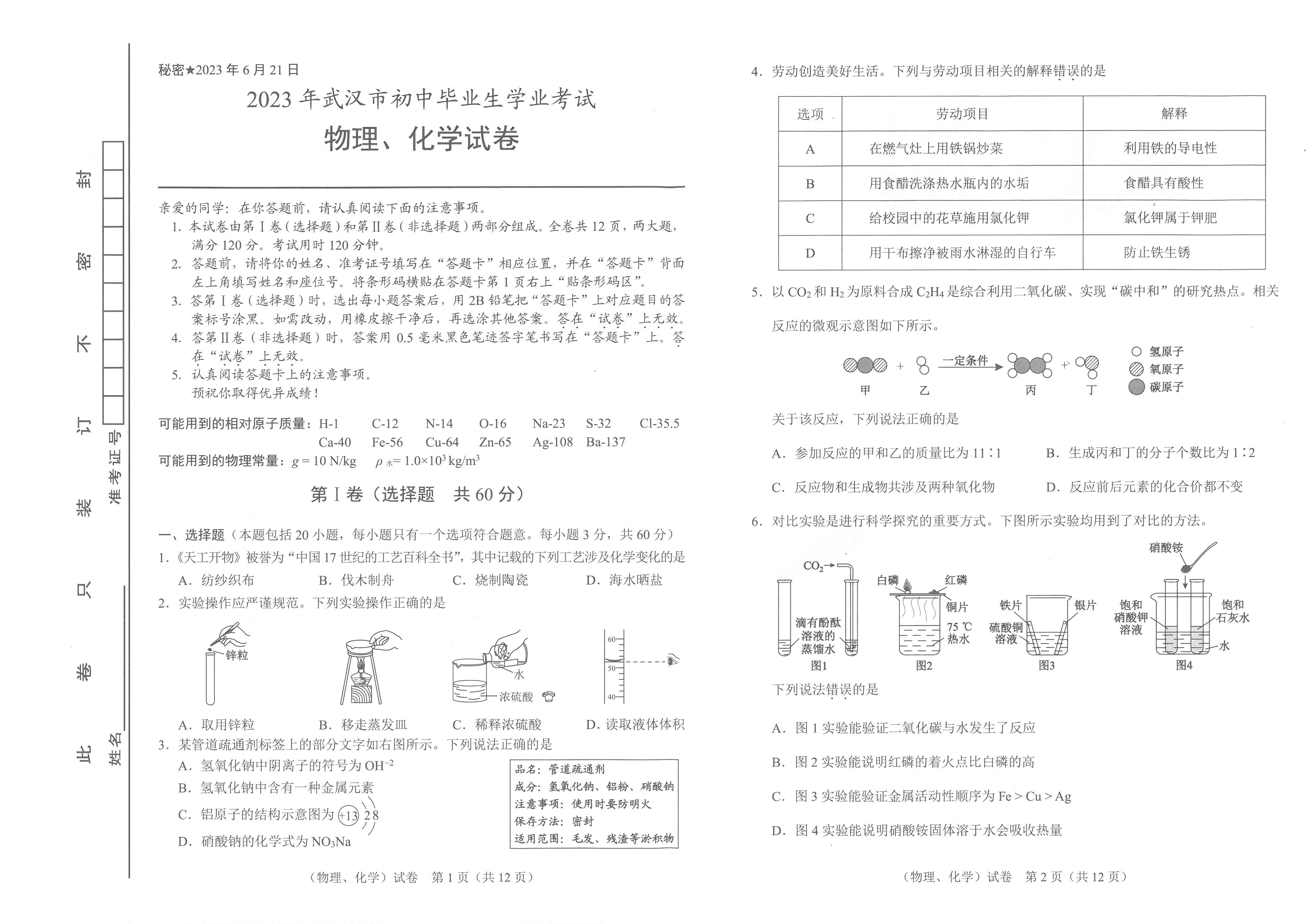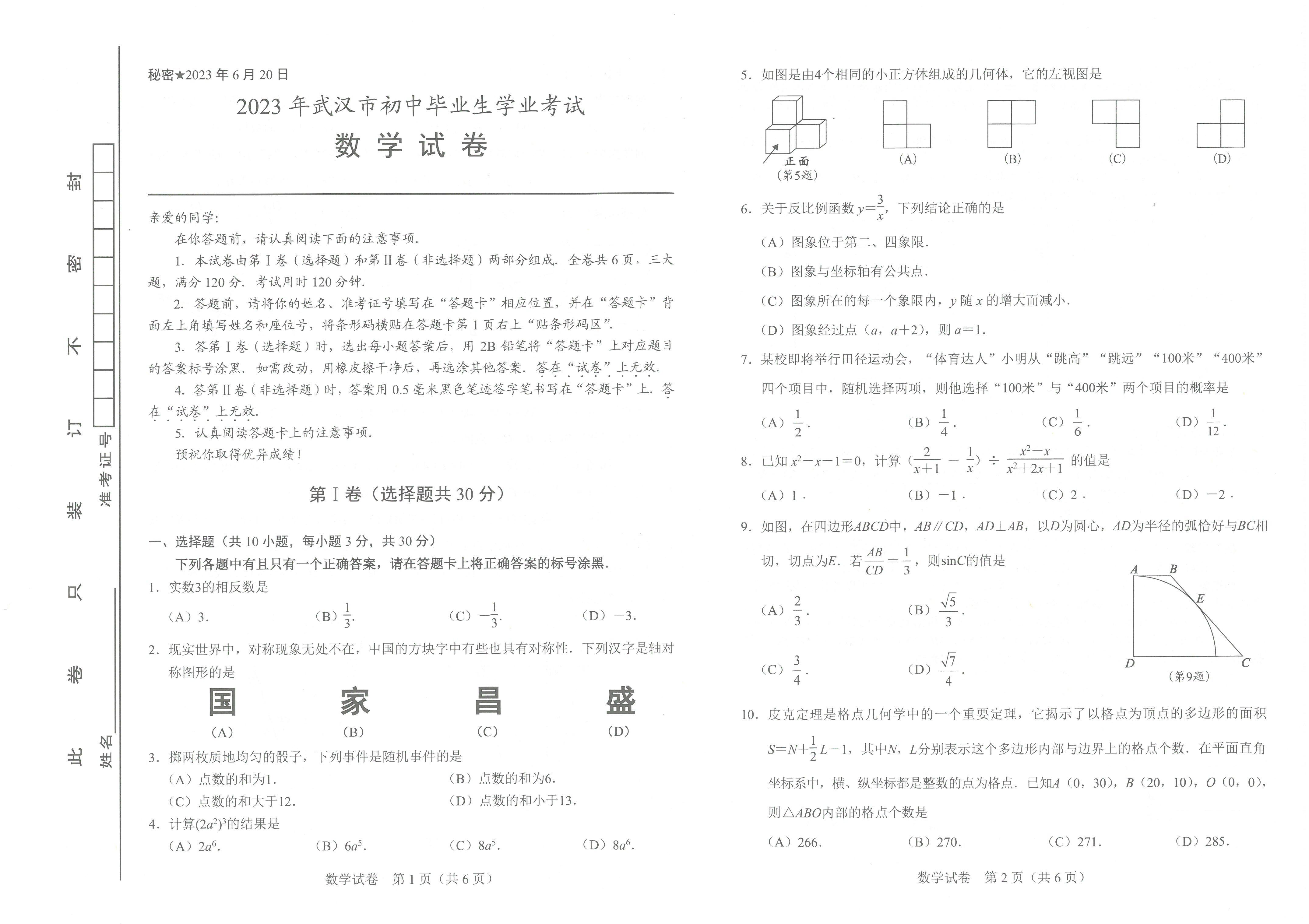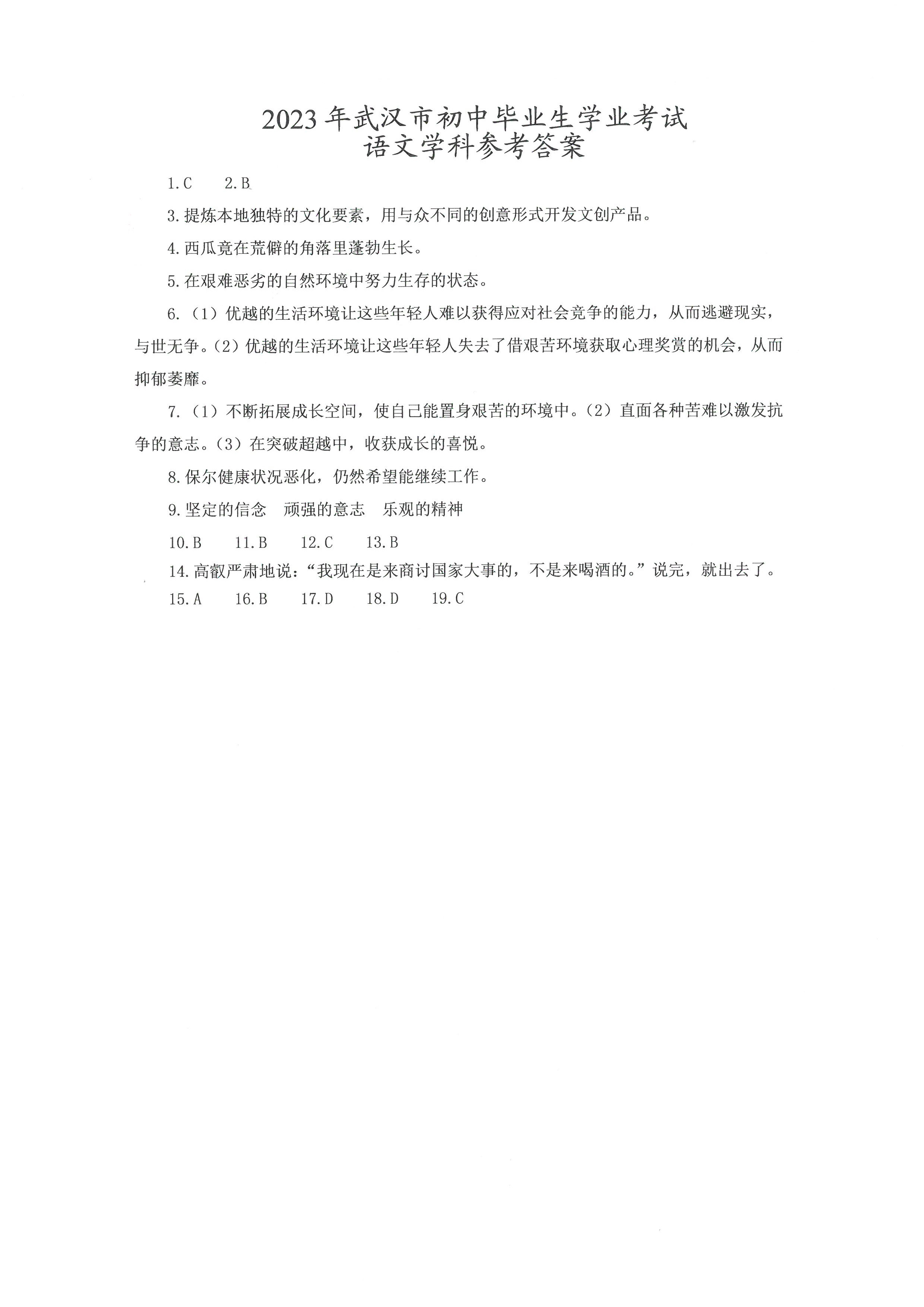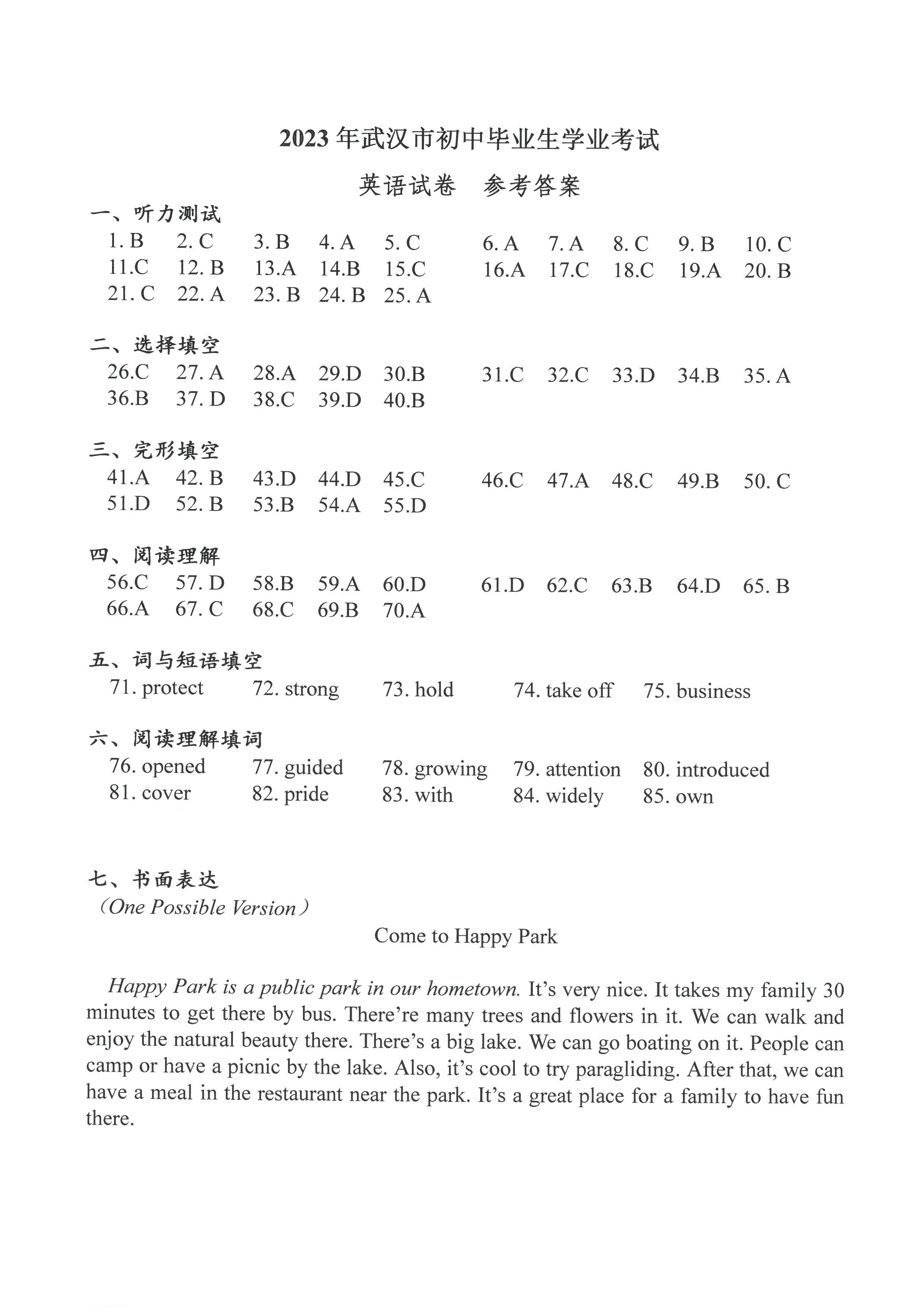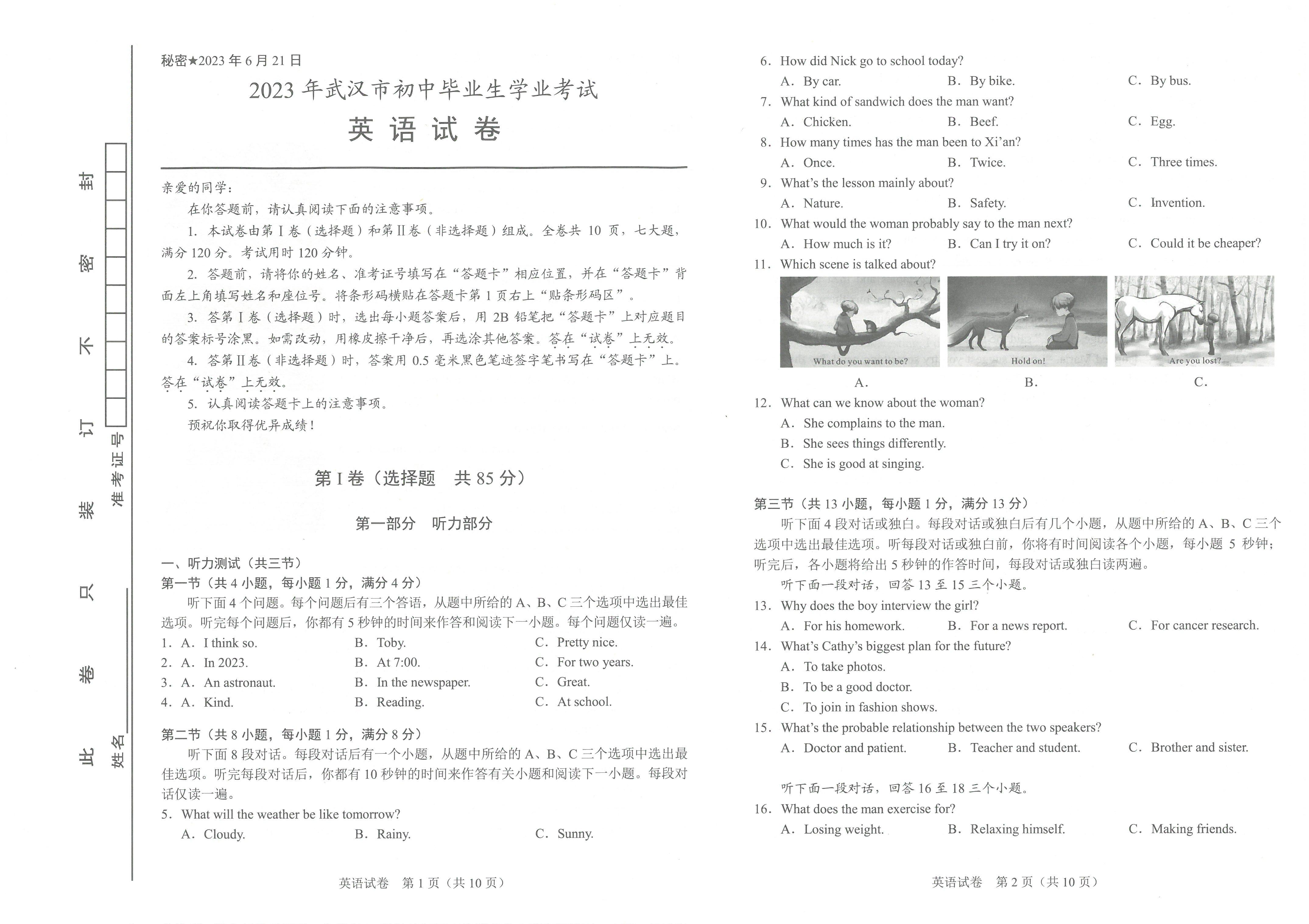 湖北日报讯 (记者张倩倩)6月22日上午11时,2023年武汉中考结束,现公布试卷和参考答案。