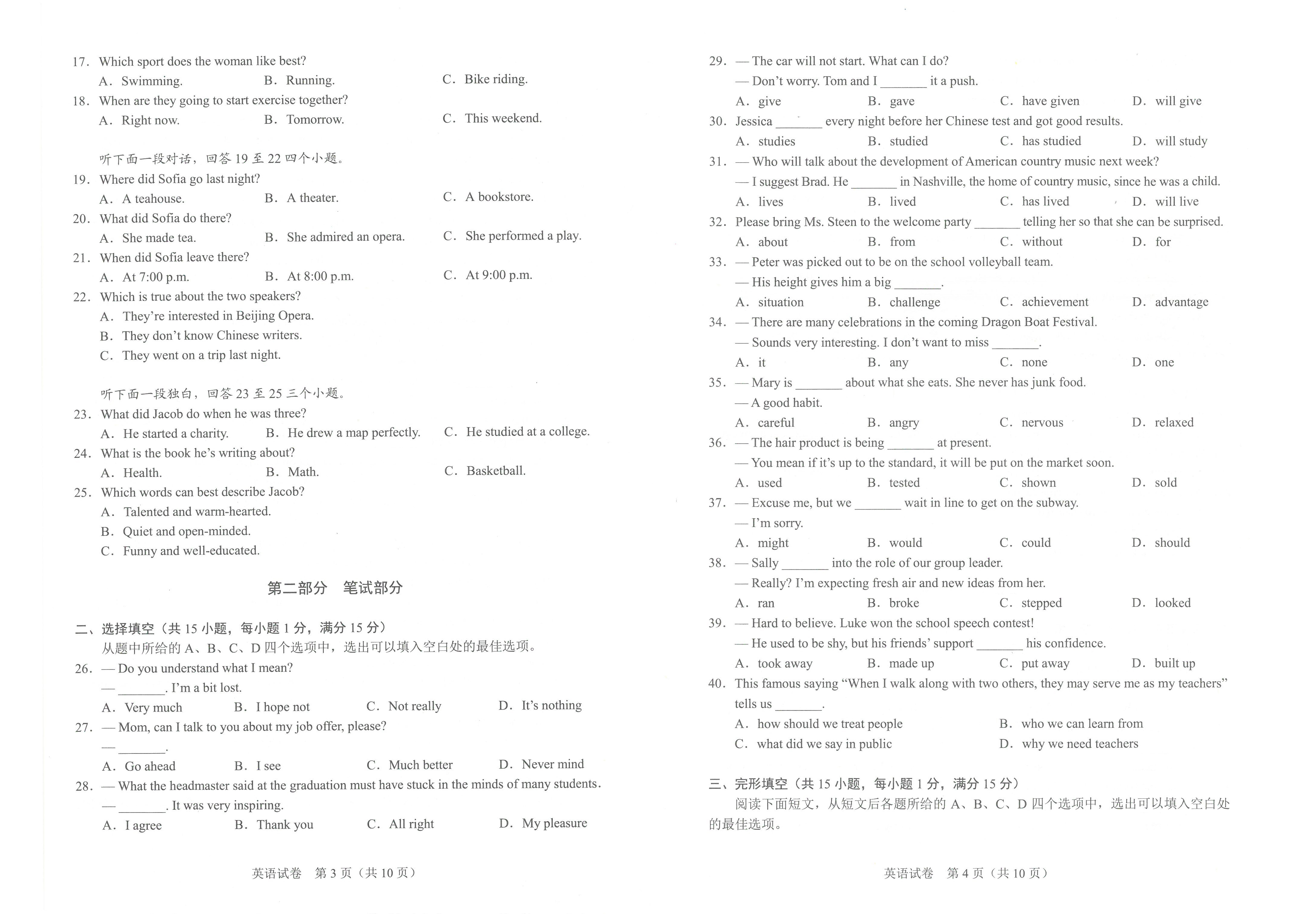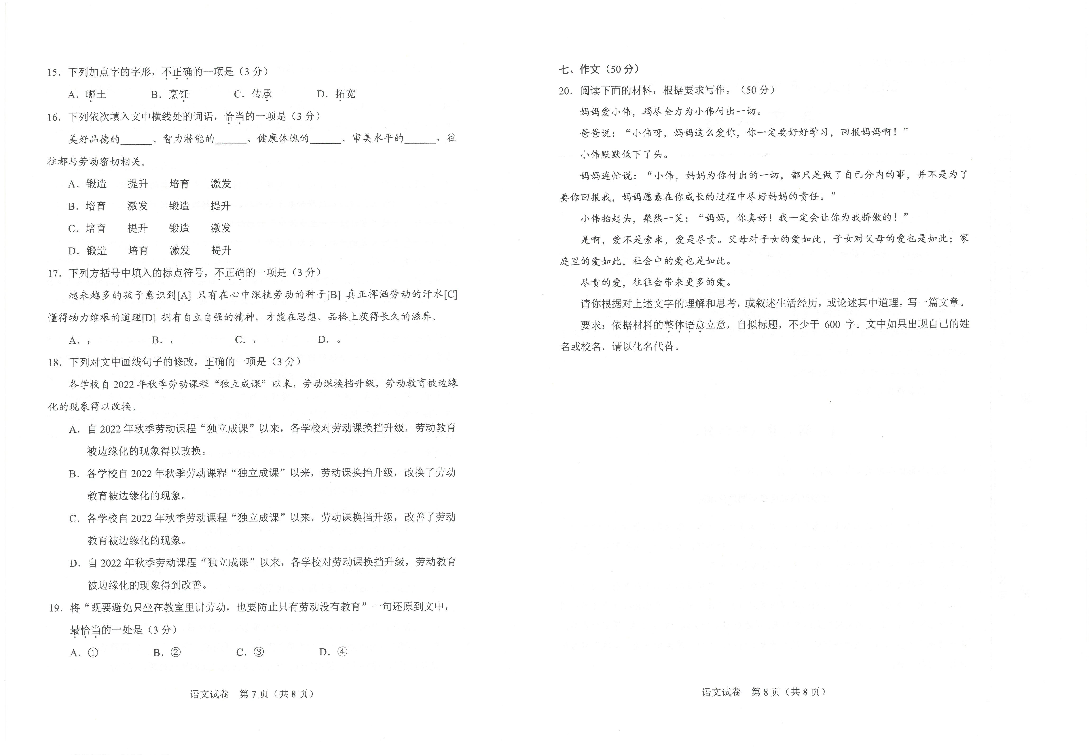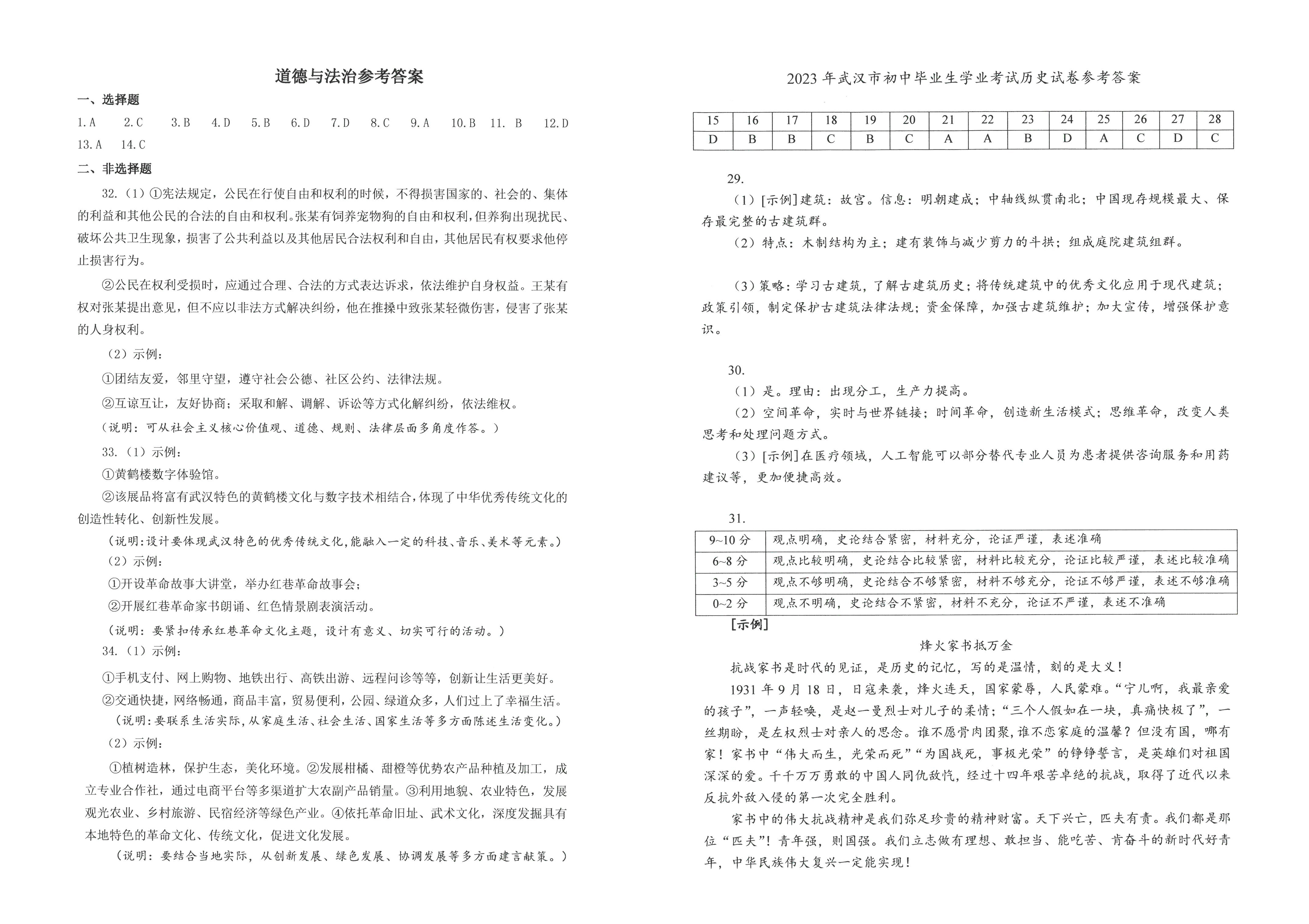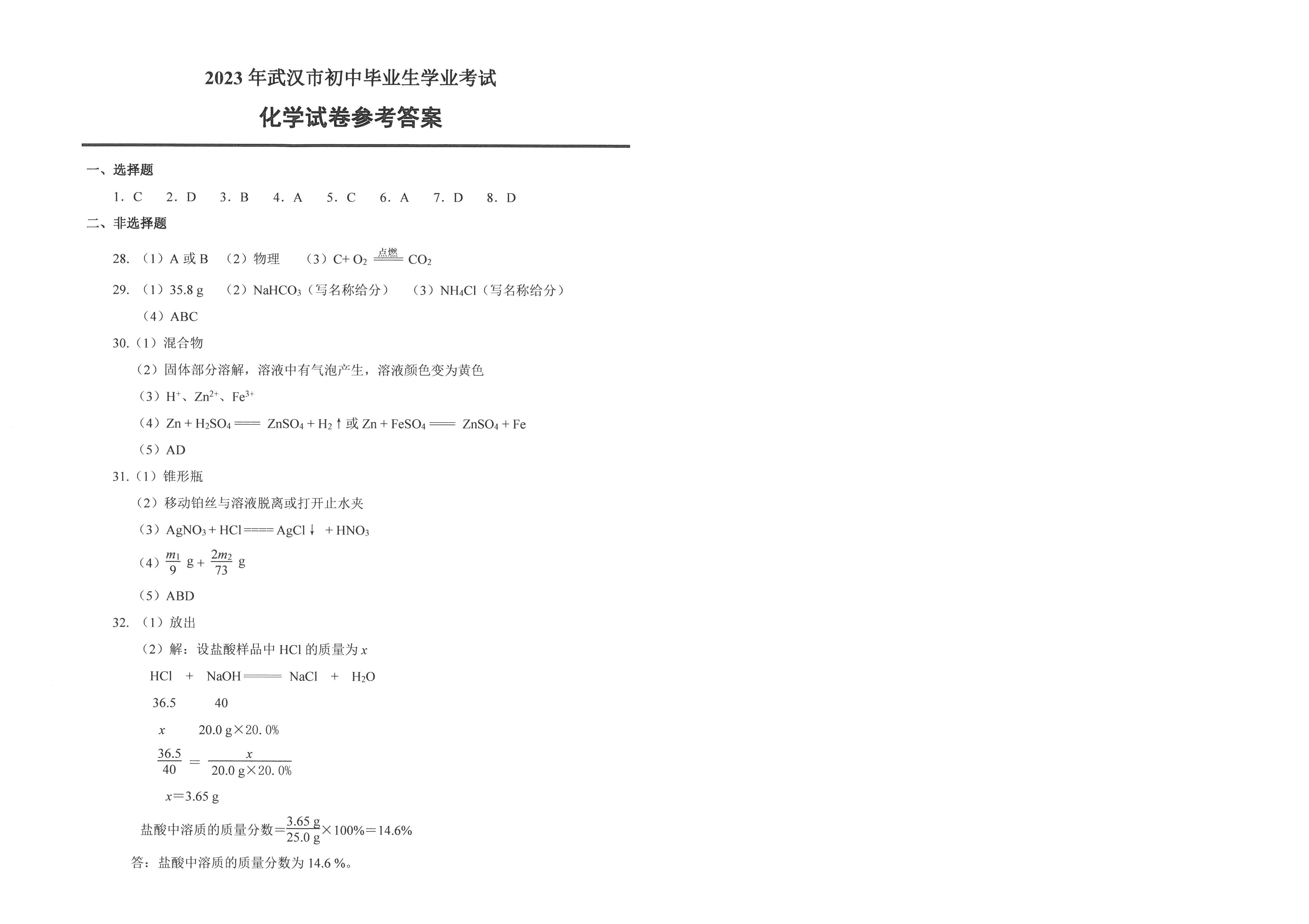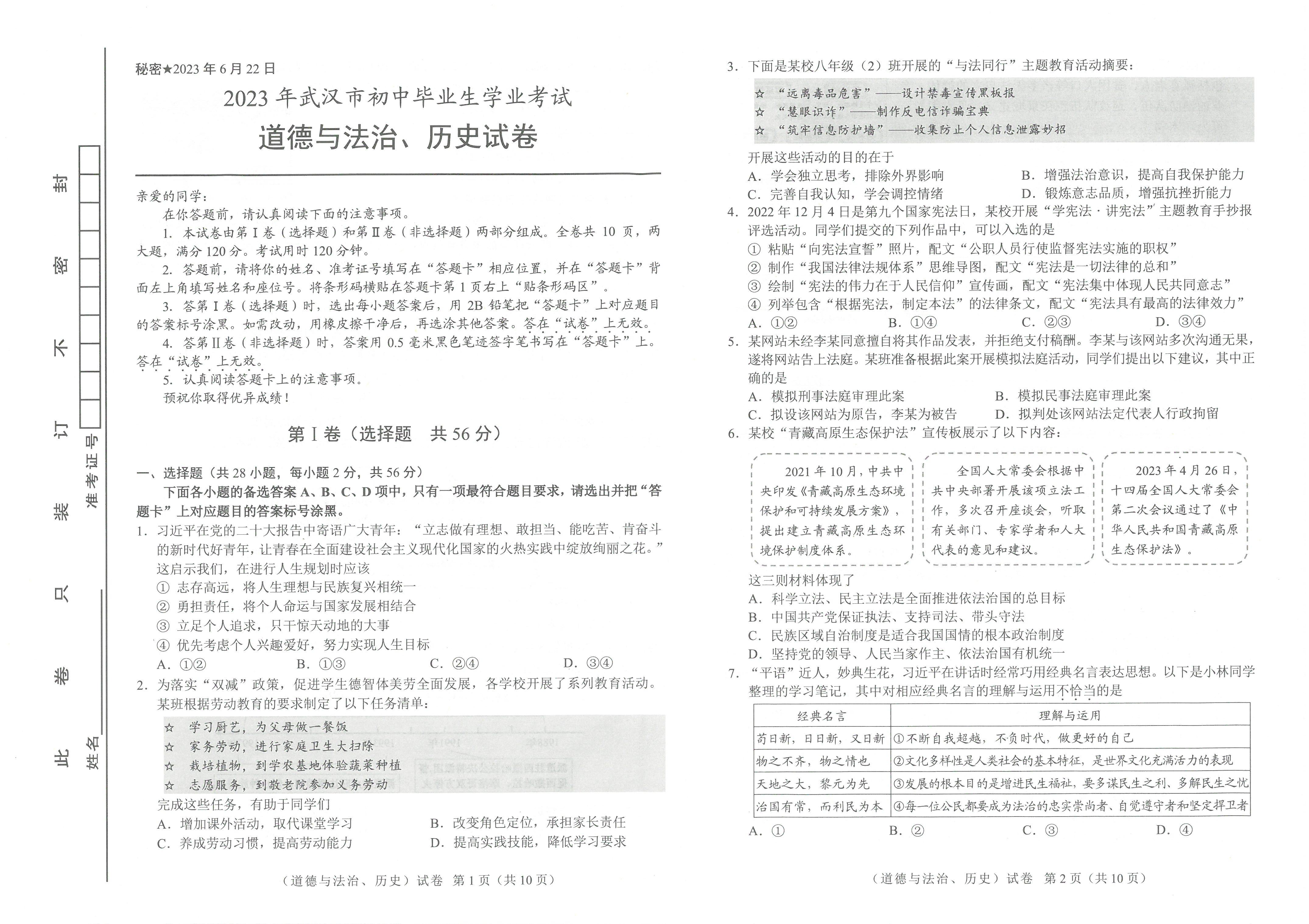 湖北日报讯 (记者张倩倩)6月22日上午11时,2023年武汉中考结束,现公布试卷和参考答案。
