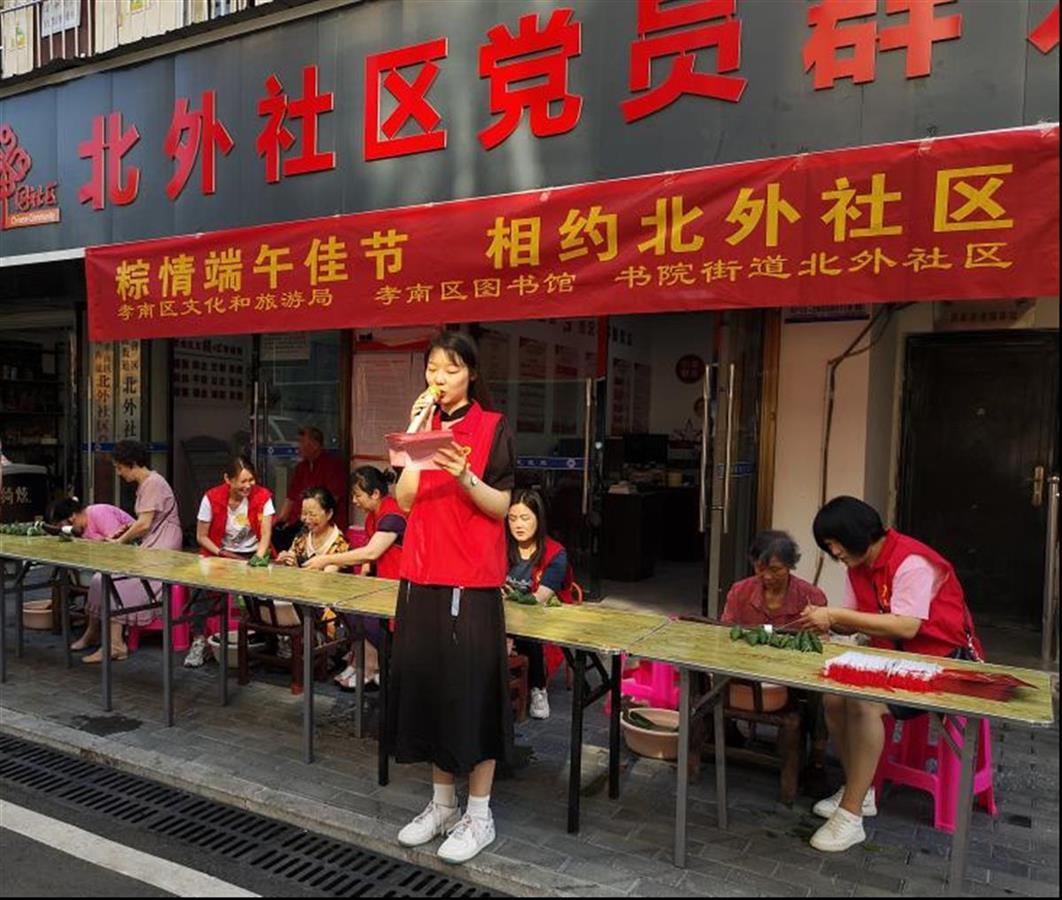 “端午节是我国四大传统节日之一,纪念的是我国古代著名诗人屈原先生。端午节习俗有吃粽子、赛龙舟、佩香囊……”在对端午节历史起源和文化内涵声情并茂的讲解中,孝感市孝南区文化和旅游局关心下一代工作委员会与书院街道北外社区共建活动正式拉开了序幕。