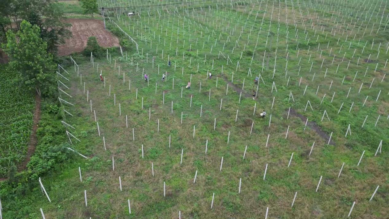 走进南漳县东巩镇千亩吊瓜产业基地,藤架已经搭好,村民们三三两两互相配合,忙着施水溶肥,再过两个月,藤架上就会结出黄橙色的吊瓜果,也是村民们的“致富果”。