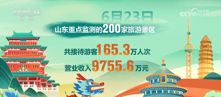 央视网消息:端午假期第二天,山东各地推出丰富多彩的活动,既有精彩展览、演艺和时尚音乐会,也有品美食、赛龙舟等传统节庆活动。据统计,6月23日山东重点监测的200家旅游景区共接待游客165.3万人次,营业收入9755.6万元。