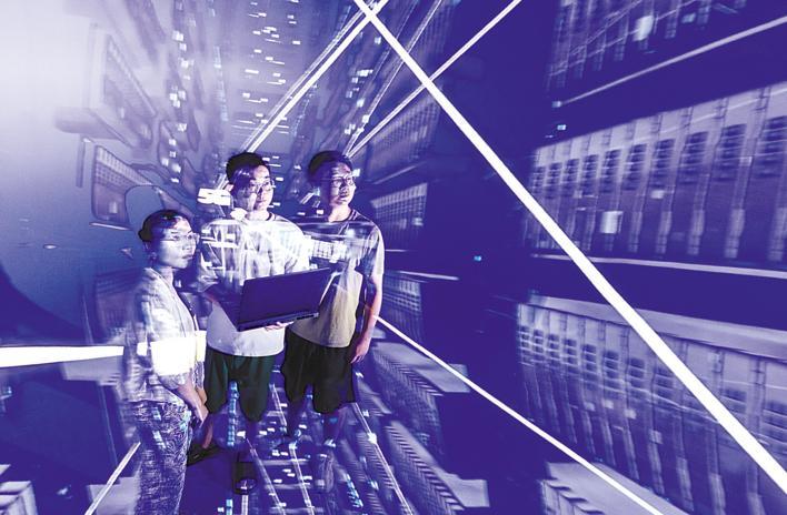 6月9日,武汉经开区智谷文化产业园,零点视觉的工程师在测试裸眼3D光影秀产品。