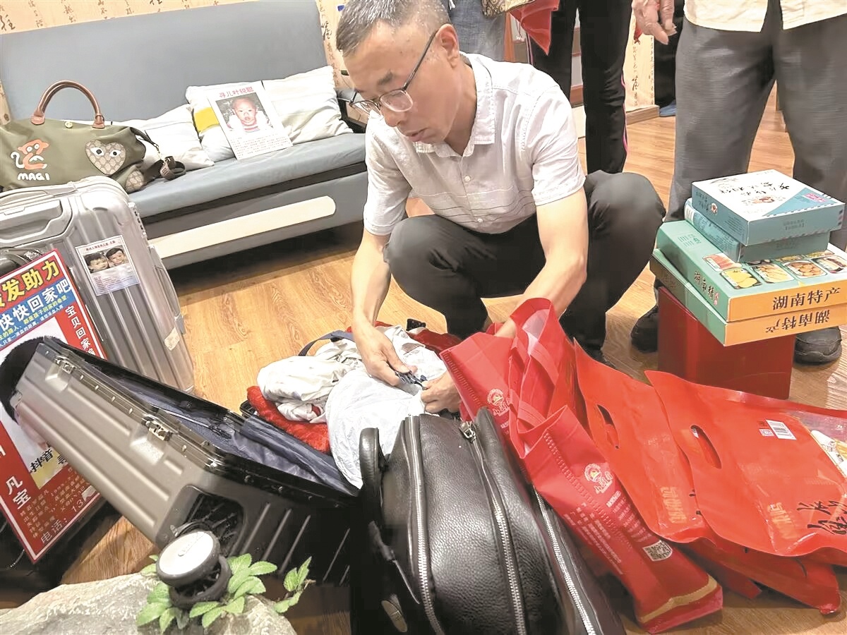 雷武泽在整理给儿子带的礼物