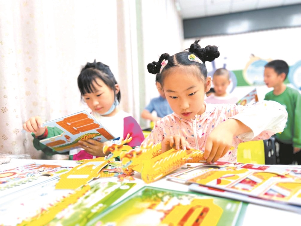 孩子们正在折纸龙舟。楚天都市报极目新闻记者 张扬摄
