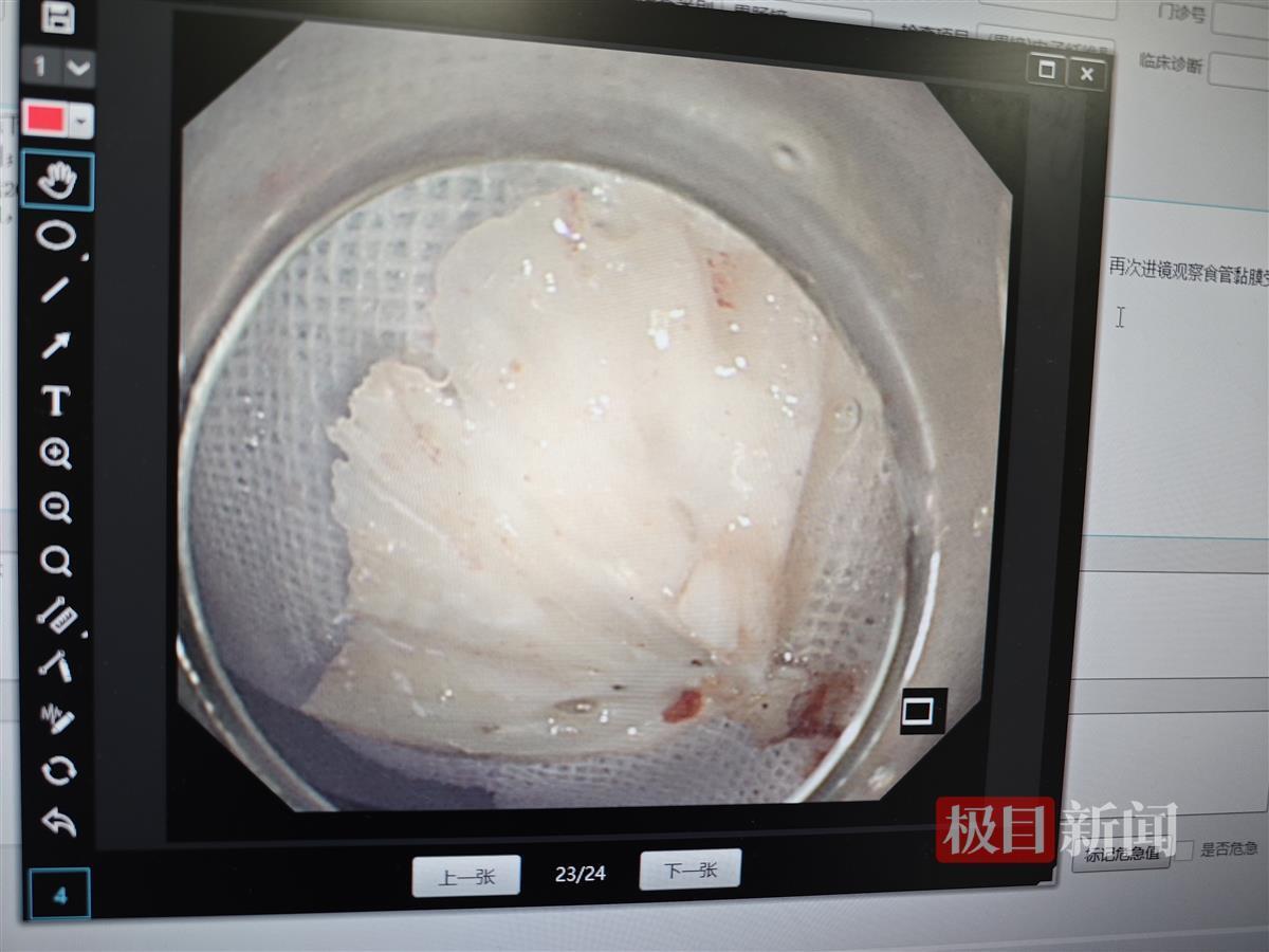 6月24日晚,不少市民还在享受端午假期最后一天的快乐,武汉的刘女士(化姓)却在深夜辗转4家医院,终于取出卡在食管的一块扇形鱼刺。