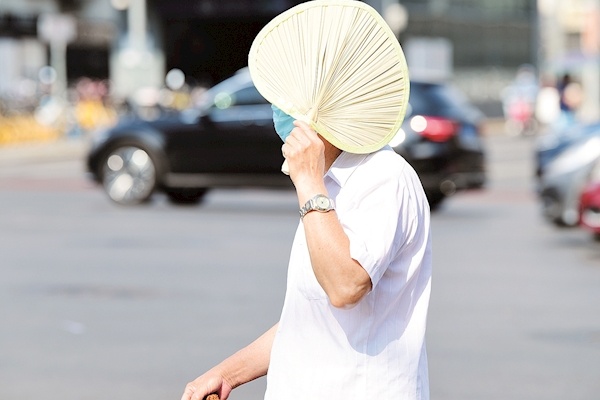 北京街头市民拿蒲扇遮阳。视觉中国图