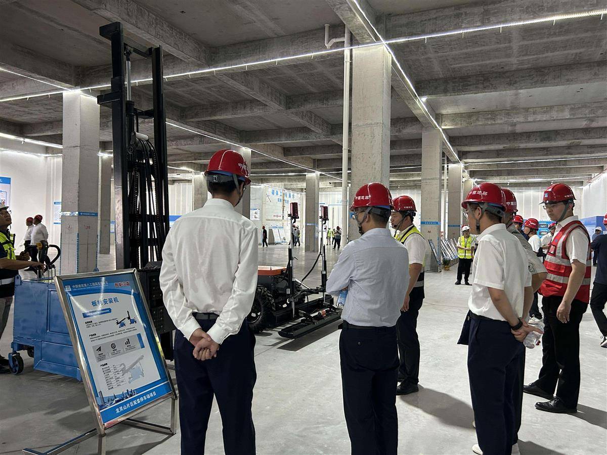 据介绍,该项目系统应用了《绿色建造施工技术手册》中的39项技术,《智能建造技术手册》中的35项技术,以及《品质建造设计施工技术手册》中的20项技术。项目创新应用了“泄水减压法”技术,替代传统的抗浮锚杆,大大减少施工成本,缩短了施工工期。现场还展示了双层升降横移式机械立体停车位、四轮激光地面整平机器人、四盘地面磨光机器人等新设备。
