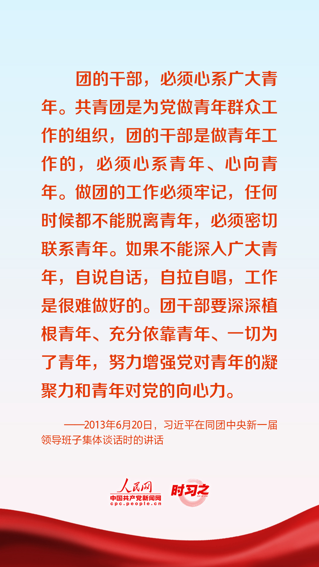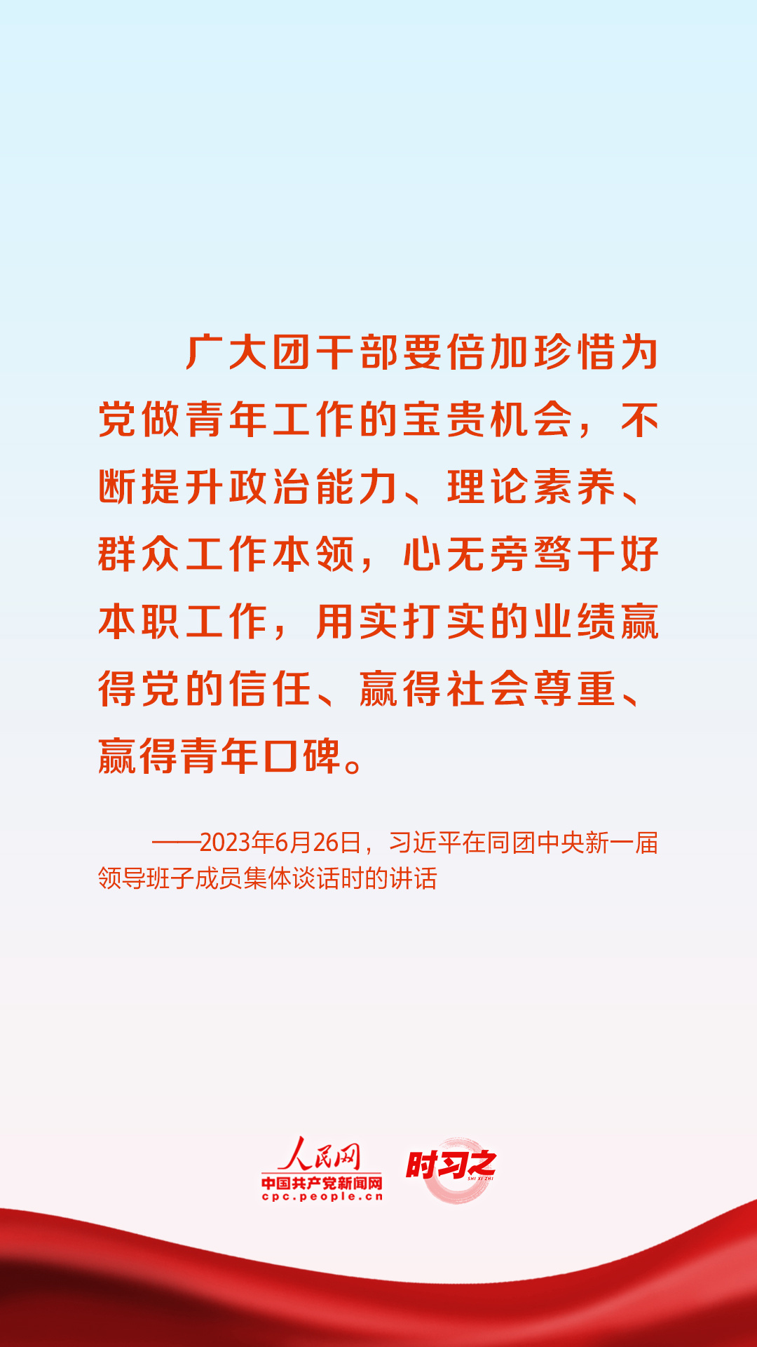 2023年6月26日,中共中央总书记、国家主席、中央军委主席习近平在中南海同团中央新一届领导班子成员集体谈话并发表重要讲话。党的十八大以来,习近平总书记始终高度重视青年干部健康成长,为如何开展好共青团和青年工作指明方向和路径、对广大团干部寄予厚望。