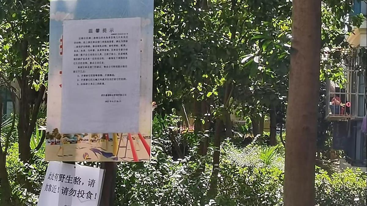 工作人员表示,除了设置提示牌外,每天都会有物业人员来这里巡逻,以确保居民与动物的安全。
