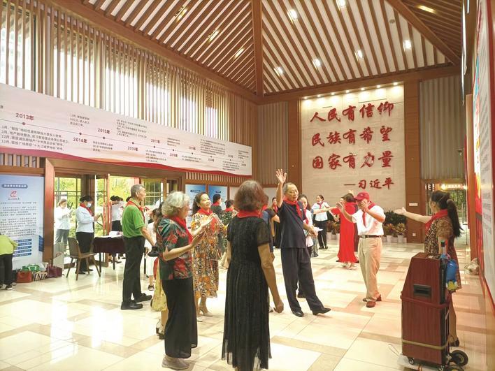 在联投党建基地内,老人们开心起舞,其乐融融。