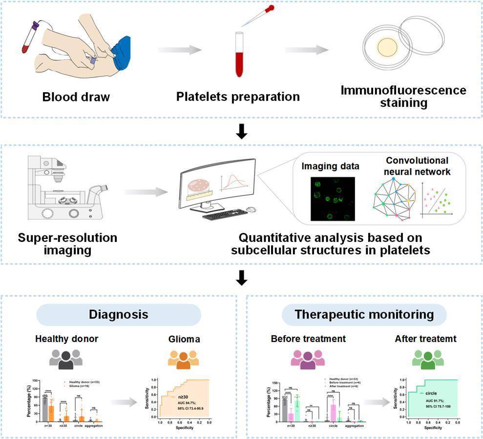 基于血小板超分辨荧光成像技术的肿瘤液体活检新技术示意图