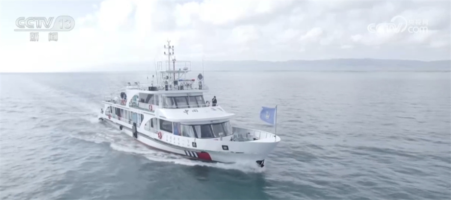 总台记者 马雅慧:此刻我所在的位置是青海湖的南岸,现在我们的船已经开始出发逐渐驶向湖面。现在是清晨的8点30分,我们看到今天的天气非常晴朗,而且能见度很不错,可以看到碧蓝色的湖水和远处黛青色的群山。我们此次航行的目的是去寻找鱼鸥。