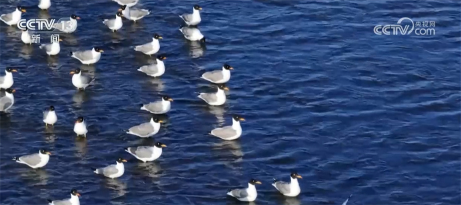 总台记者 马雅慧:三块石是青海湖国家级自然保护区的核心区,这里曾经可是鱼鸥的主要繁殖地。现在我们可以看到,零星的有几只黑色的鸟应该是鸬鹚在飞翔,还有白色的应该是鱼鸥栖息在三块石上。