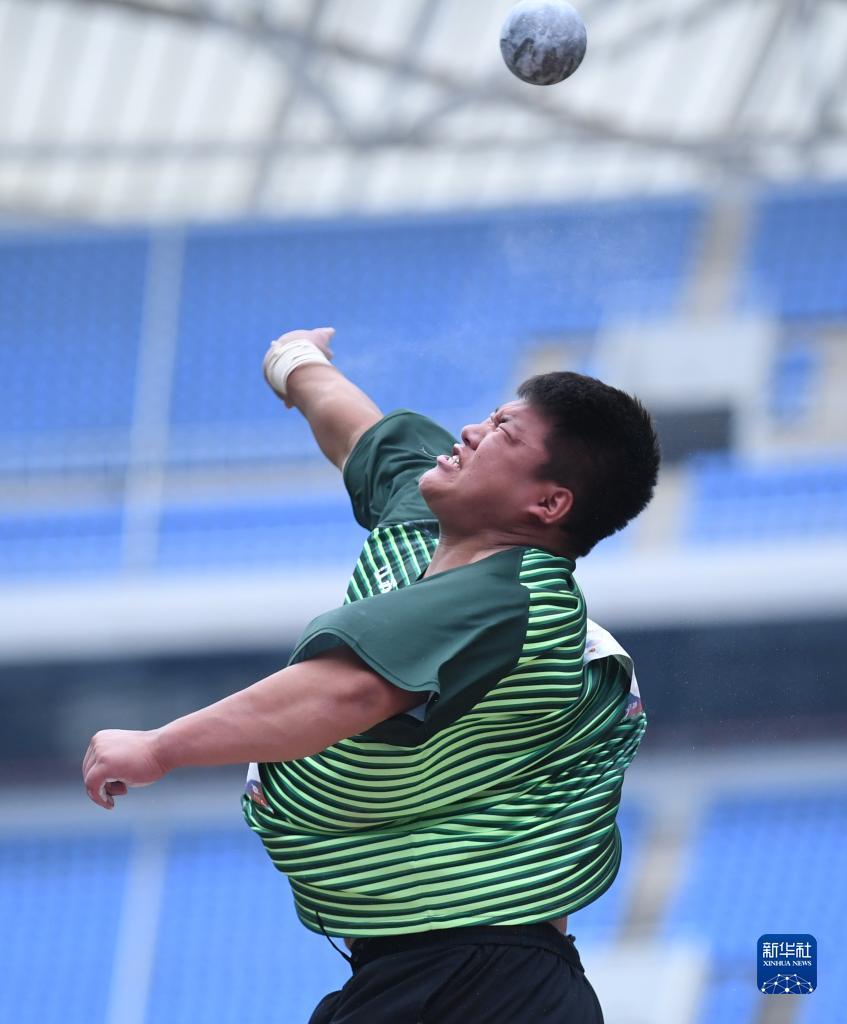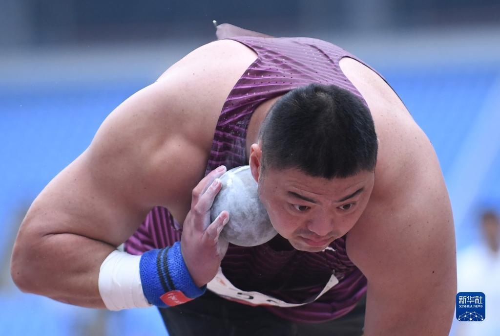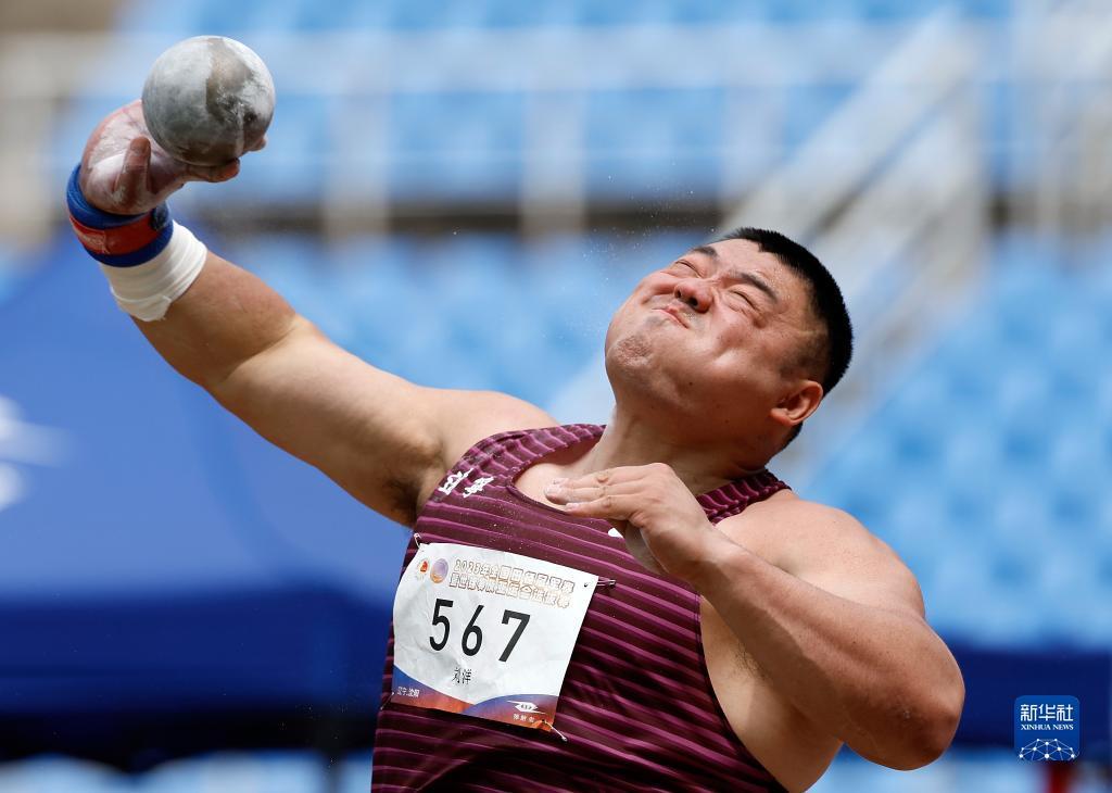 6月29日,新疆零阻力队选手陈剑在男子铅球决赛中。最终,他以19米77的成绩获得亚军。新华社记者 王丽莉 摄