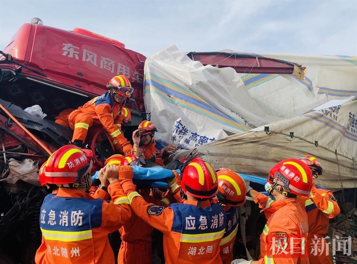 16时47分,消防救援人员到场。经侦查发现,两辆半挂车发生碰撞,其中一辆半挂车车头挤压变形严重,驾驶员膝盖被死死卡在方向盘下方,动弹不得。