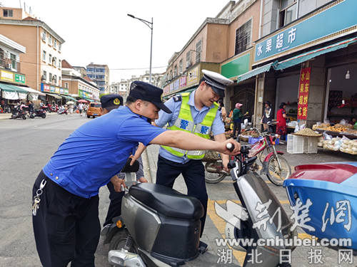 “牟姐,曹哥,这些空框子要快点收起来,绊手绊脚影响做生意唷!”新市派出所城畈社区民警柳伟跟商贩们熟络地打着招呼。