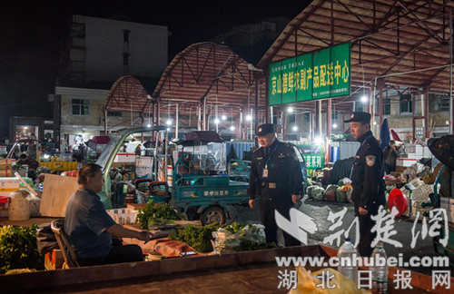 凌晨时分,民辅警在农贸市场开展巡逻。通讯员 供图