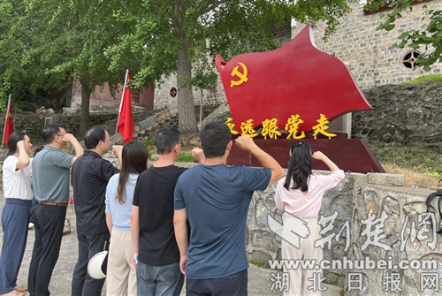 在鄂豫边区第一届抗日人民代表大会旧址罗家祠堂,全体党员干部重走红色道路,参观会议场景、了解抗战遗留物品背后的故事,听党支部书记黄红波同志讲述那段艰辛而辉煌奋斗的抗战历史。在伟大抗战精神的感召下,由支部委员吴霞同志领誓,全体党员高举右拳,重温入党誓词,面对党旗再一次作出了庄严承诺。