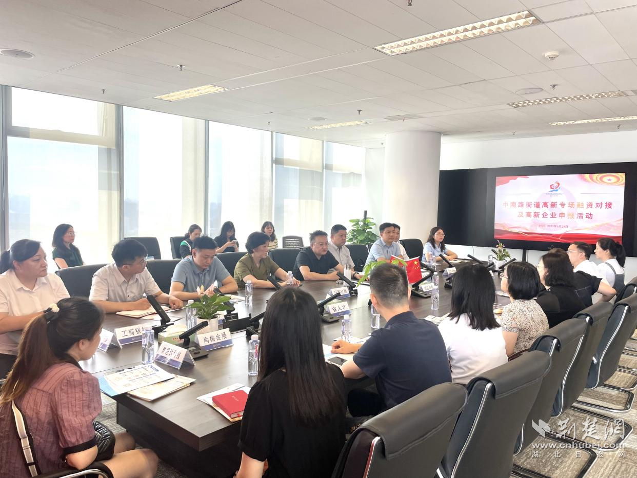 荆楚网(湖北日报网)讯(通讯员 彭聪)为助推高新技术企业加速发展,优化辖区营商环境,6月29日上午,在武昌区中南路街道保利文化广场党群活动服务中心·招商共享中心,中南路街道联合区金融局、区科经局、区企服中心开展高新专场融资对接及高新企业申报培训活动,为辖区企业提供专业经济知识和金融产品。