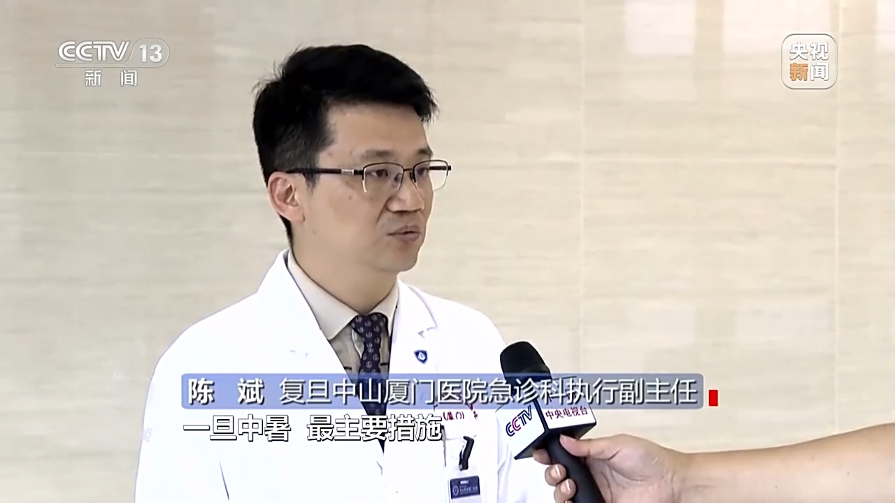 复旦中山厦门医院急诊科执行副主任 陈斌:一旦中暑,最主要措施就是要迅速把体温降下来,比如把患者转移到阴凉处,用酒精或者凉水给他擦浴,如果症状还是不改善,一定要及时来急诊就诊。