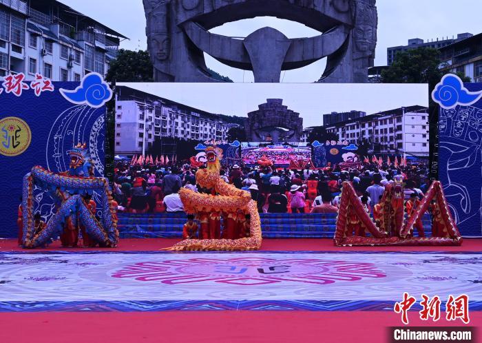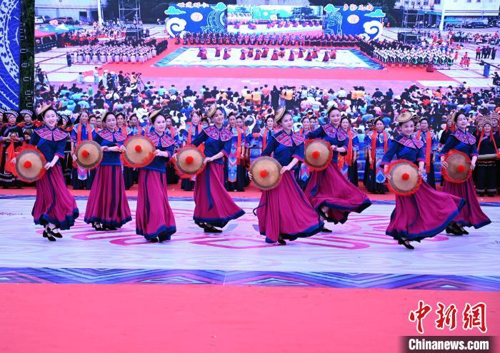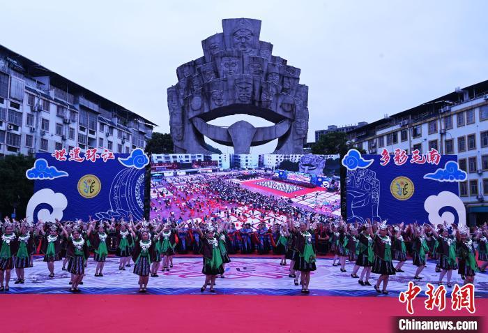 中新网环江6月30日电(记者 杨志雄 黄艳梅)2023年广西环江·毛南族分龙节暨第八届世界自然遗产文化旅游节30日在广西环江毛南族自治县开幕,当地民众载歌载舞,集中展示特色非遗项目和民俗文化,欢度毛南族分龙节。