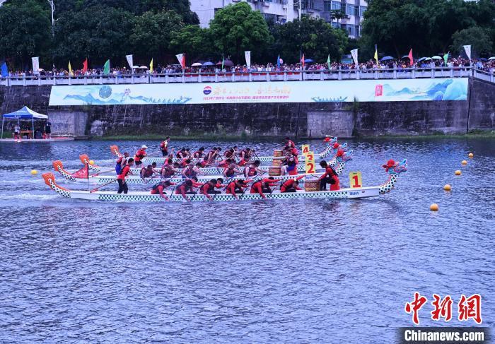 图为广西环江·毛南族分龙节龙舟公开赛现场。 杨志雄 摄