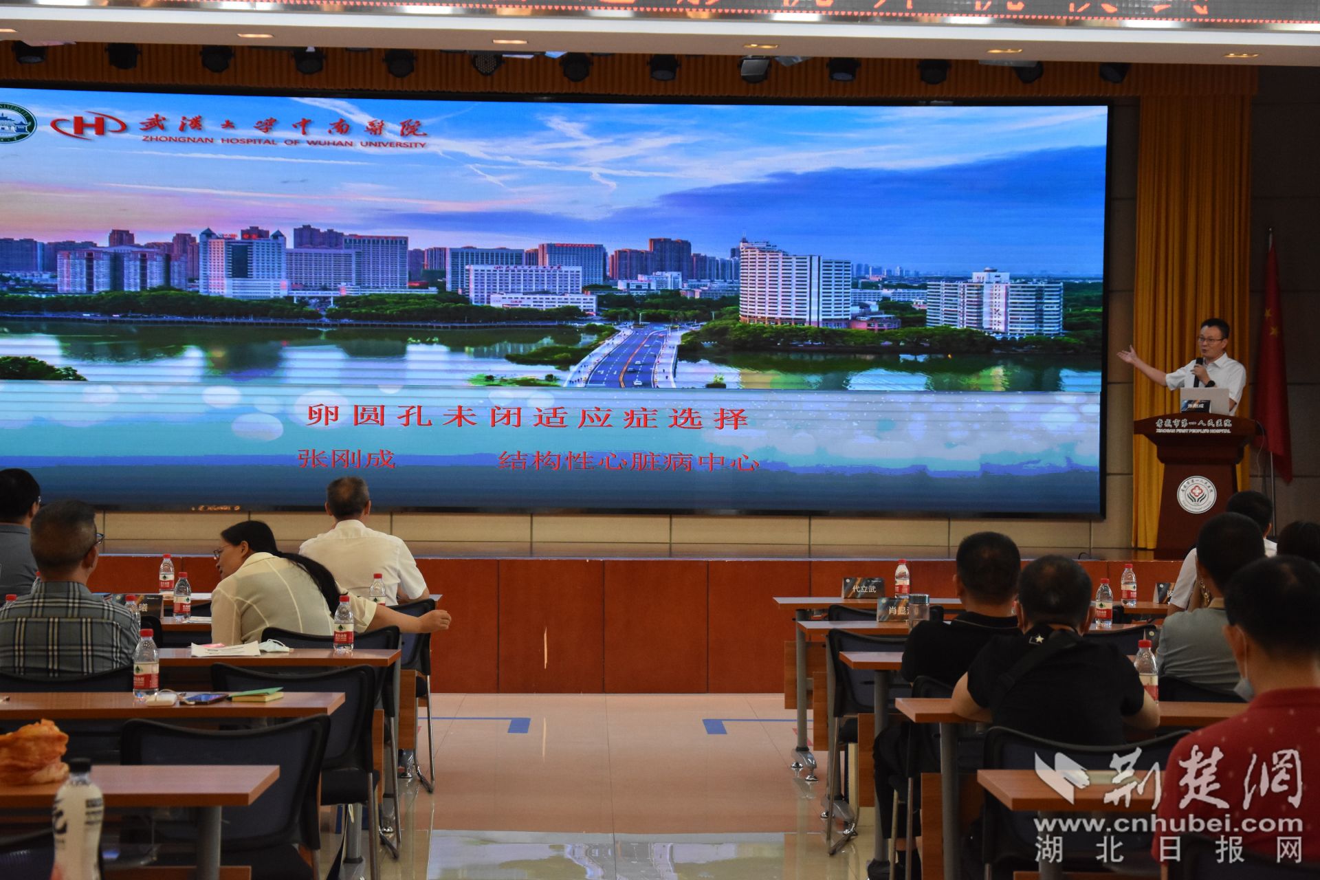 该院邀请武汉大学中南医院心血管病医院副院长张刚成、华中科技大学同济医学院附属梨园医院心血管临床医学中心副主任张勇华、武汉亚洲心脏病医院病区副主任闵志勇及孝感市第一人民医院心内科主任钟金鹏等专家围绕PFO简介及封堵治疗临床适应症、胸痛中心和胸痛单元建设、PFO封堵器械临床应用进展等方面向全体医护人员做专题学术讲座。