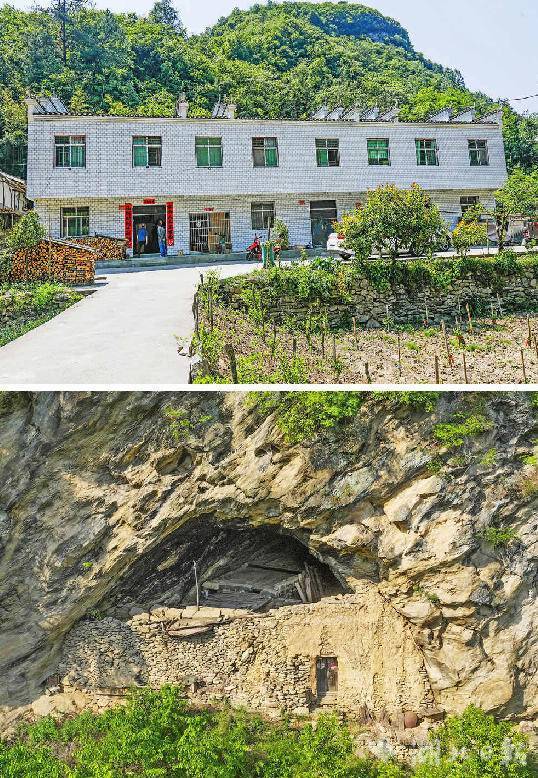 (罗显成现在居住的楼房外观与罗家岩屋的外观。)