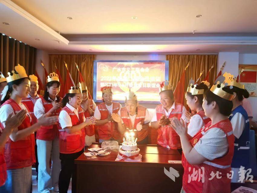 湖北日报客户端讯(通讯员程开军)6月30日晚,广水市义工联合会在应山街道双桥社区活动室举办“‘义’心向党·凝聚‘工’心”广水义工联集体培训生日会活动,同庆党的生日,感受党的温暖。