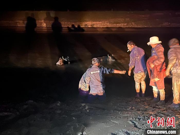 最终,经过3个多小时的紧急施救,当晚23时许,所有不慎陷入泥沼中的牦牛全部救出,待牦牛渐渐恢复体力后,民警又护送牧民和他的牛群安全返回其家中,为牧民挽回损失近7万元。