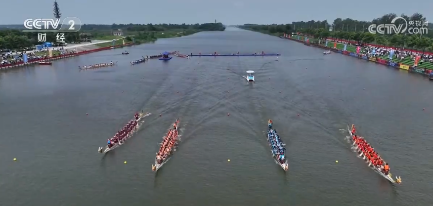 参赛选手中既有职业选手,也有当地的龙舟队选手。随着比赛开始,一艘艘龙舟如同离弦之箭,在宽阔的水域上飞驰,上演一场场精彩的水中竞逐,观赛现场群众高声呐喊,为选手们加油助威。