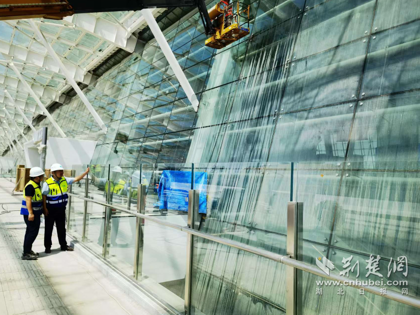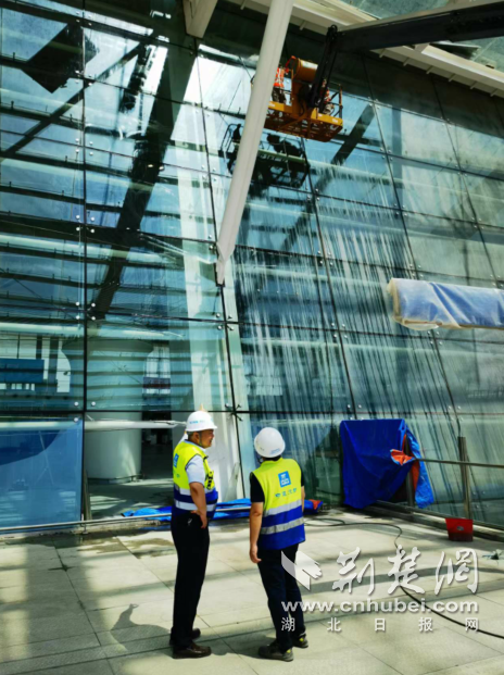 荆楚网(湖北日报网)讯(记者张扬 通讯员翟林)历时一年多,武汉天河机场T2航站楼改造工程近日基本完工,全面进入了设备调试阶段。6月28日,武汉的室外温度已高达30多度,但是当记者来到T2航站楼中建装饰集团所属东方装饰公司(以下简称“中建东方装饰”)改造工程项目部时,却看到工人们依然紧张有序地进行着各项收尾和幕墙的清洗工作,他们正在用汗水浇筑着城市之美。