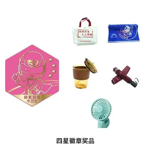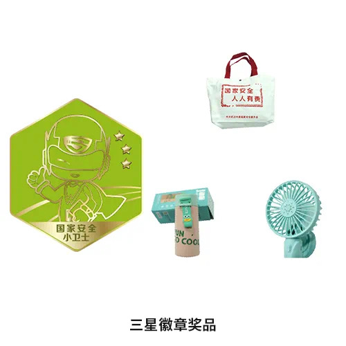 线上,依托互动H5小程序,按照游戏通关模式,设置浏览基地、知识答题、打卡上传等互动环节。参与者通过微信扫描活动二维码,登录“江城少年国安行”小程序参与活动。在浏览基地概况并答对1道国家安全知识题目后,即可进入基地打卡环节。每打卡1个基地,上传与“武小安”合影,就可点亮1个基地的图标。点亮1个基地、3个基地、5个基地、8个基地,可分别获得“国家安全小卫士”一星、二星、三星、四星电子荣誉勋章。