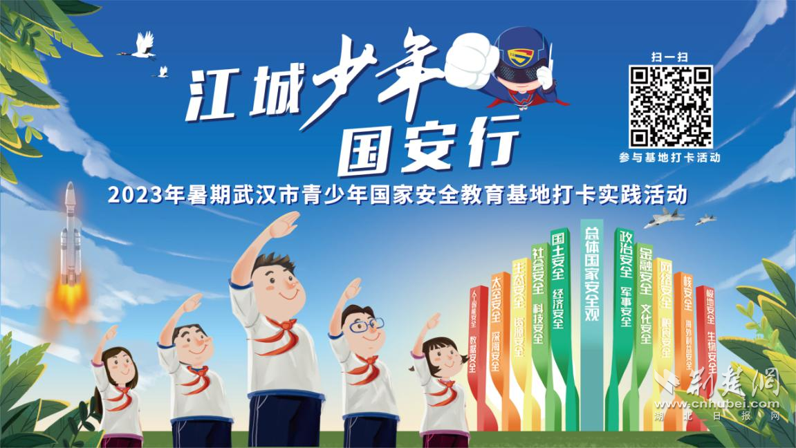 荆楚网(湖北日报网)讯(通讯员武国安宣)“江城少年国安行”—2023年暑期武汉市青少年国家安全教育基地打卡实践活动由市委国安办、市教育局、团市委联合举办,将于7月5日在武汉规划展示馆国家安全教育基地正式启动,至8月26日结束,活动采取线上线下相结合的方式开展,贯穿整个暑期。