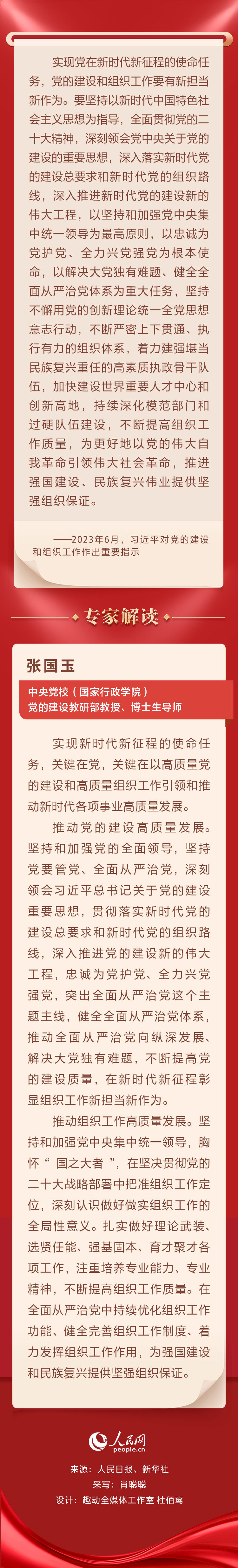 近日,中共中央总书记、国家主席、中央军委主席习近平对党的建设和组织工作作出重要指示强调,实现党在新时代新征程的使命任务,党的建设和组织工作要有新担当新作为。人民网带您重温要点并邀请专家进行解读。