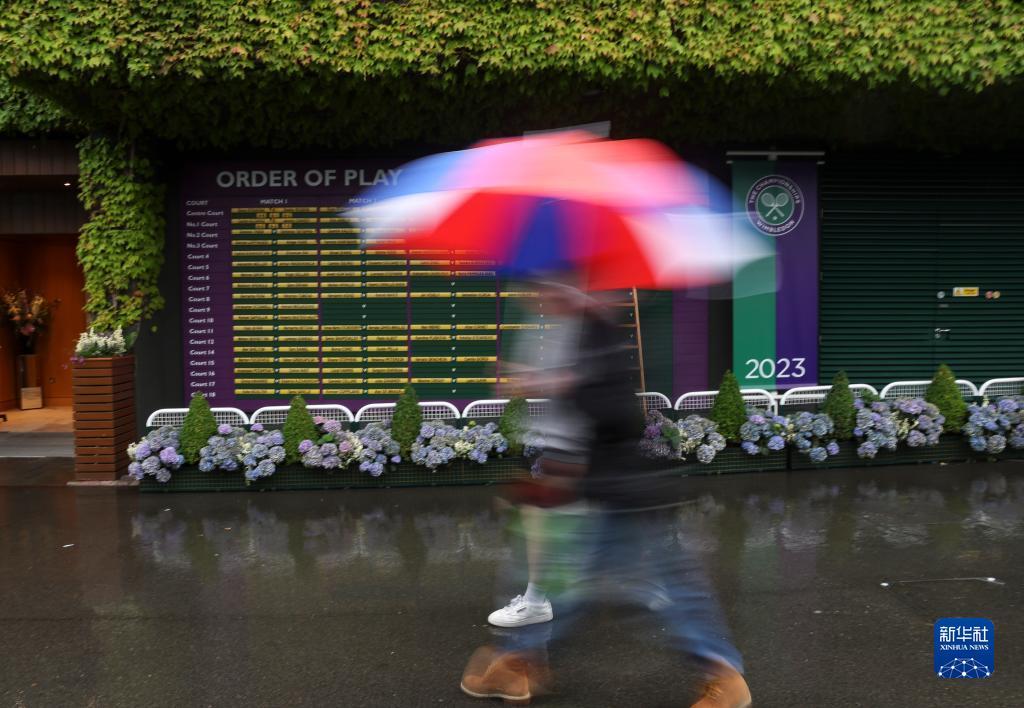 当日,在英国伦敦举行的2023温布尔登网球公开赛进入第二日争夺。由于持续降雨,除了中心球场和一号球场外的大部分场地的比赛均推迟进行。