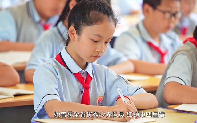 她勤奋好学、责任心强,有集体荣誉感,是学校的全优学生。曾获全省优秀少先队员、红领巾四星章。多次荣获优秀学生、三好学生、优秀班干部、优秀大队干部、全面发展之星荣誉。作为一名大队长,不仅时刻以队章作为准则严格要求自己,更发挥模范带头作用,带领班级、社团积极开展各项活动,争取各项荣誉。她兴趣广泛,乐于助人,擅长舞蹈、唱歌、书法、主持、演讲,积极参与公益活动。
